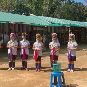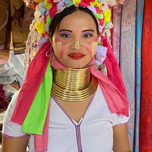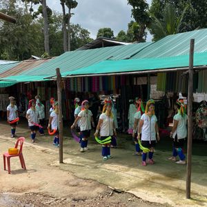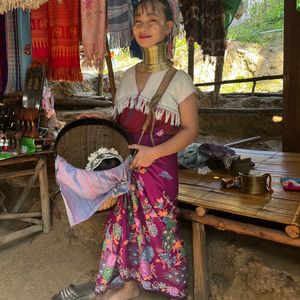 首長族の方々の生活スタイルを見学でき、また首の輪っかを付けて一緒に撮影することができます。