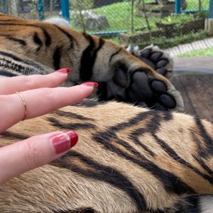 ツアーでは行きたかったタイガーキングダムでは憧れのトラと触れ合い写真を一緒に撮りました。ネコみたいに大人しく人に触られる事が好きみたいでした。日本ではぜったいに体験出来ないので行けて良かったです。