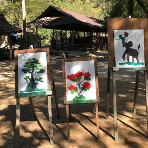 川や木々の中を行くゾウ乗り体験、ゾウのお絵描きやふれあいをさせて貰えるショーや、自然の中をのんびり行くイカダ下り等満喫出来ました。
