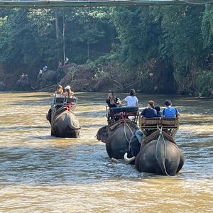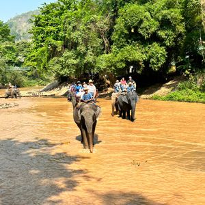 餌をあげたり、象さんの足に乗ったり、鼻に乗ったりと、象さんとの触れ合いが出来ます。30分間の象乗りで山道を登ったり、川を渡ったり、最高の経験でした。