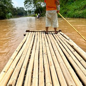イカダ下りは思いのほか快適で、景色を見ながら船頭さんがカタコトの英語で説明してくれます。途中、急流もありスリルも楽しめました。
