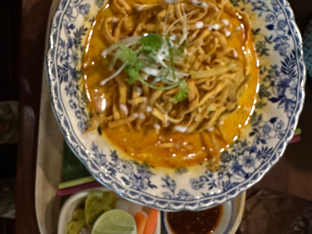 昼食のカオソーイも現地を感じられるレストランに連れて行ってくれました。食べやすい辛さでとても美味しかったです。