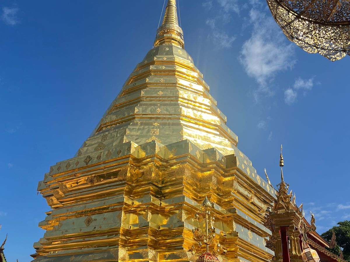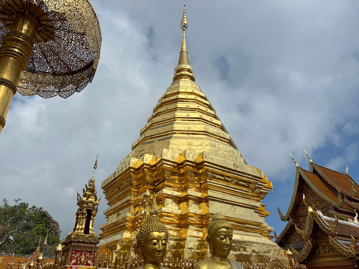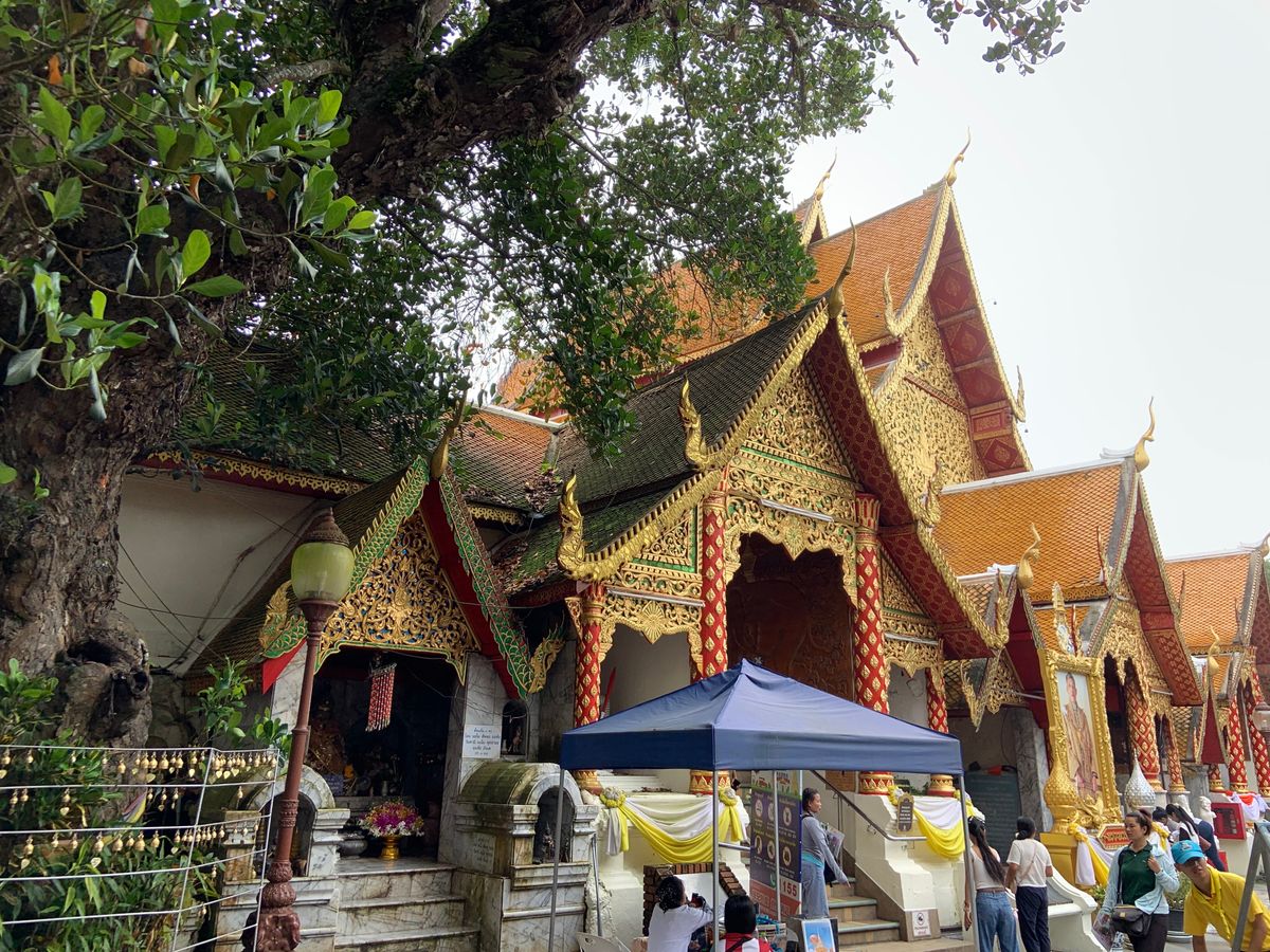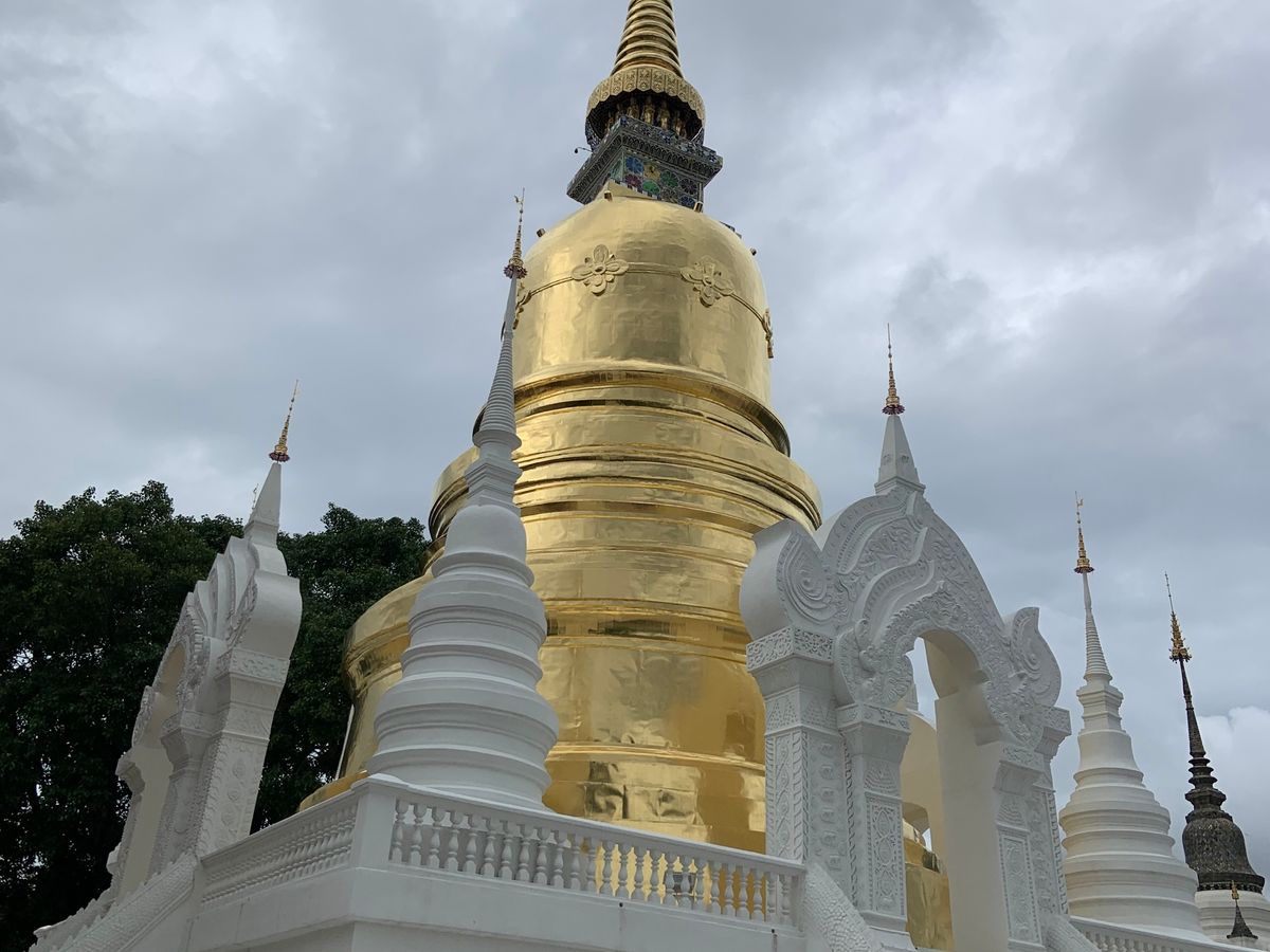 ホテルはニマンヘミン通り近くだったので、まずはワットチェットヨートへ。次はワットスワンドーク、そしてワットドーイステープ。その後市内に戻り、昼食で美味しいカオソーイと揚げ春巻きをいただきました。