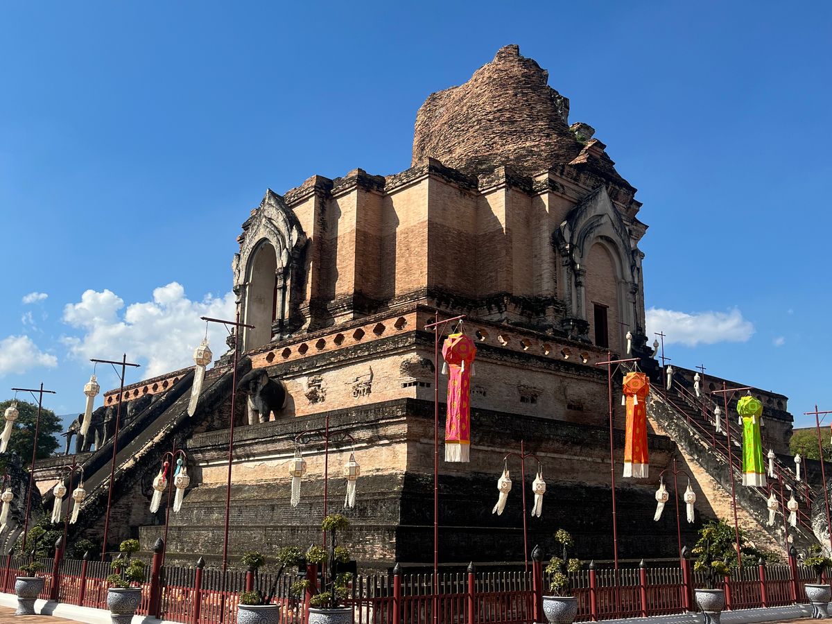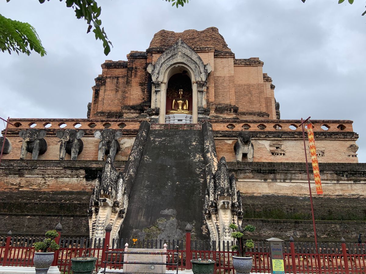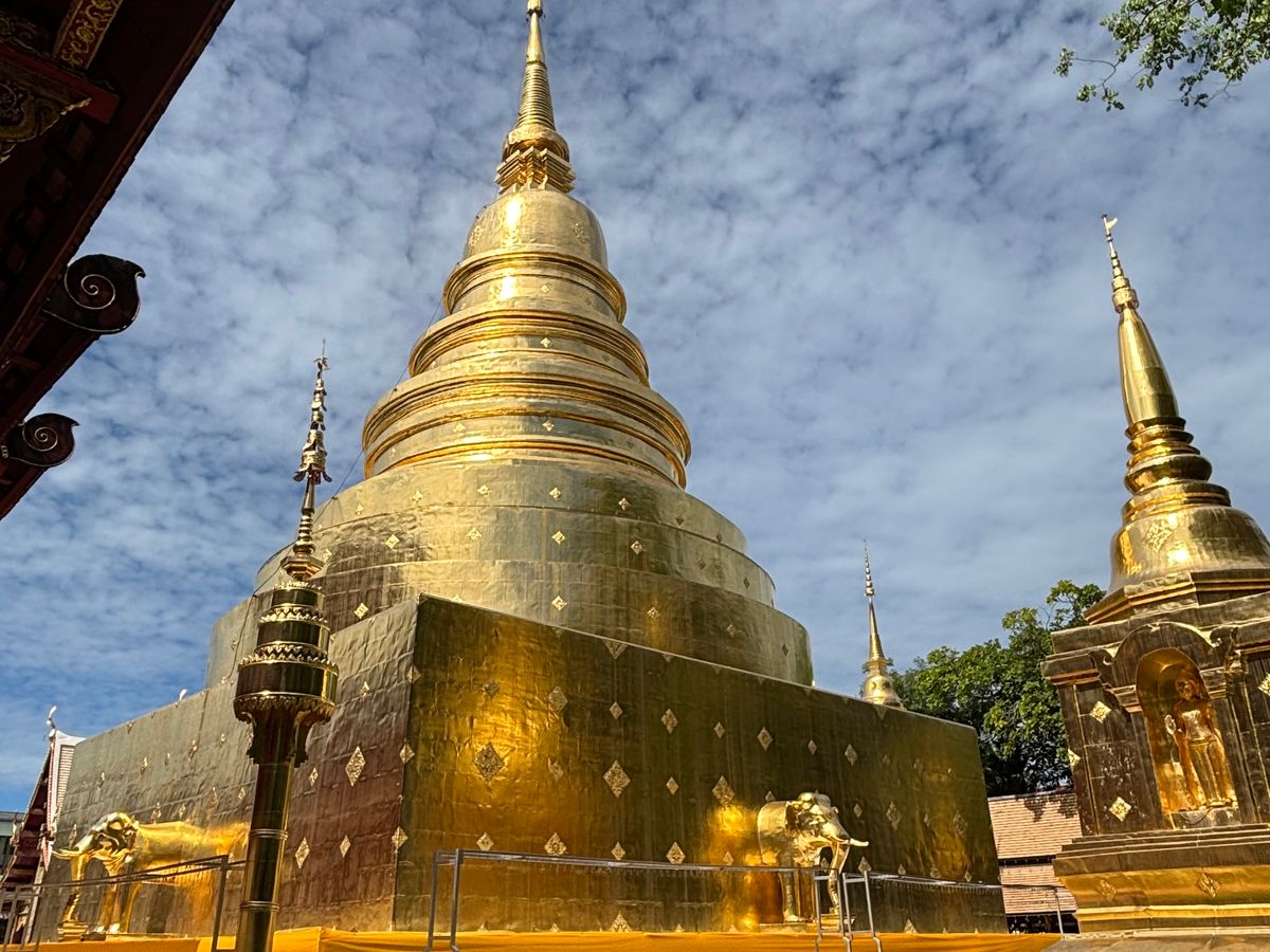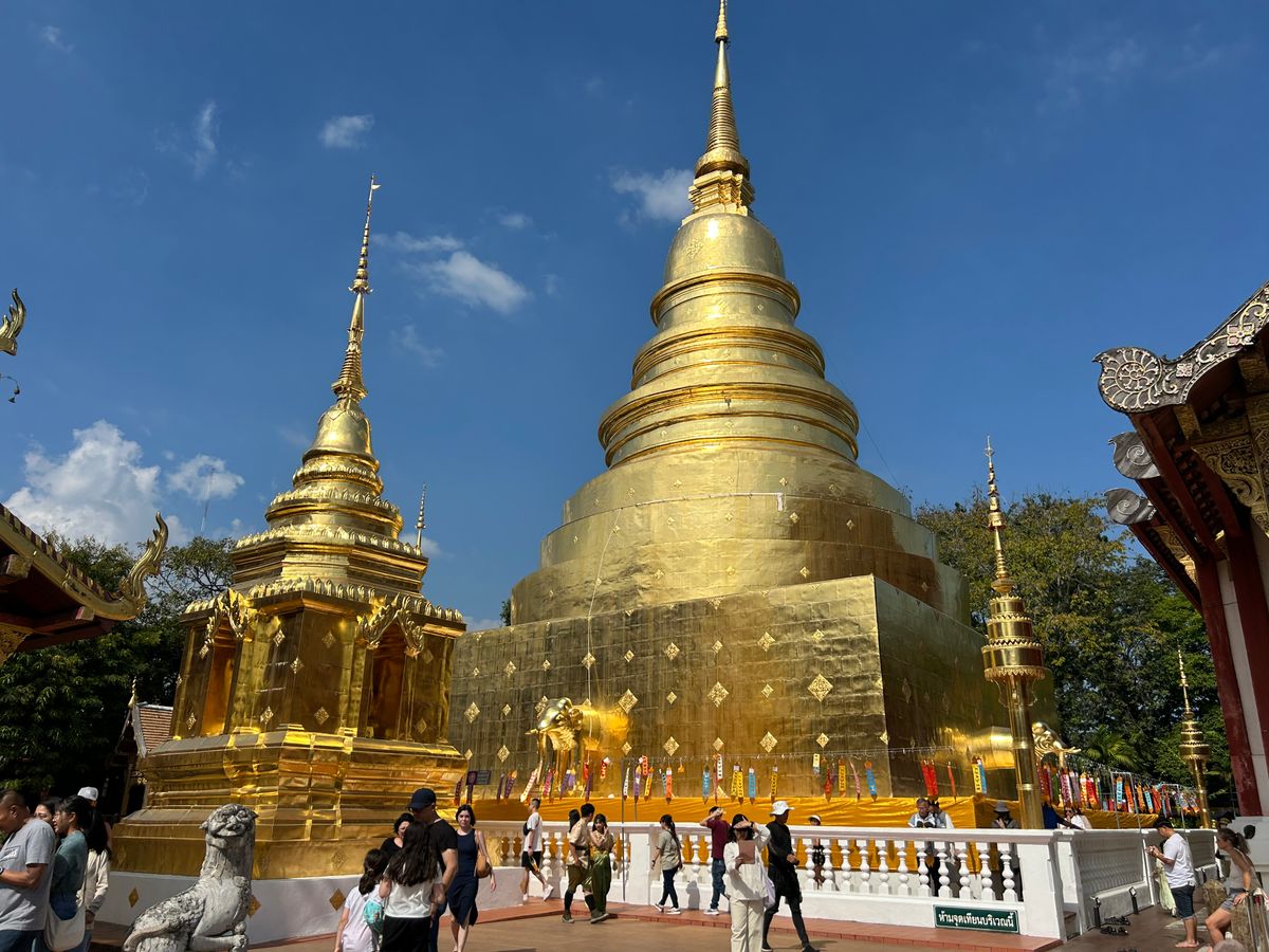 ホテルはニマンヘミン通り近くだったので、まずはワットチェットヨートへ。次はワットスワンドーク、そしてワットドーイステープ。その後市内に戻り、昼食で美味しいカオソーイと揚げ春巻きをいただきました。
