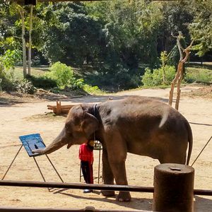象のショーでは、象がとても上手に絵を描くのでビックリしました。「象乗り」は料金に含まれないのでオプションです。私達は乗らなかったのですが楽しそうだったのでチョット後悔しています。