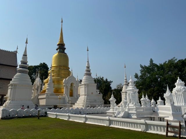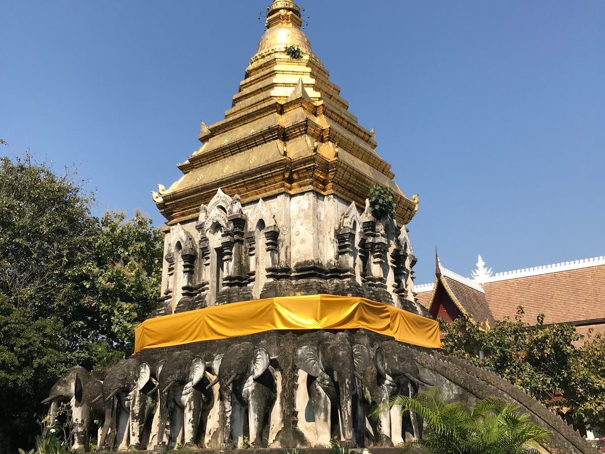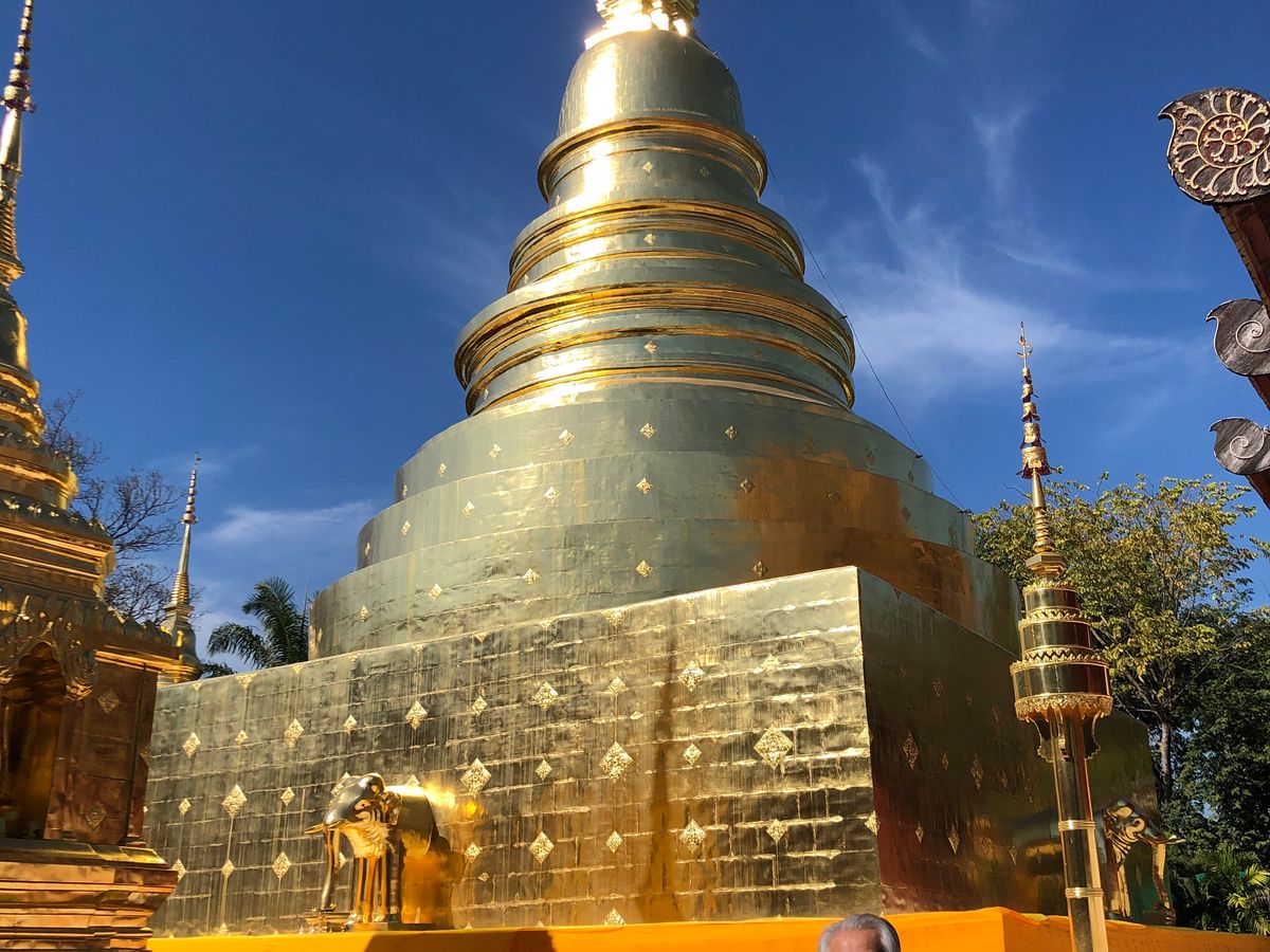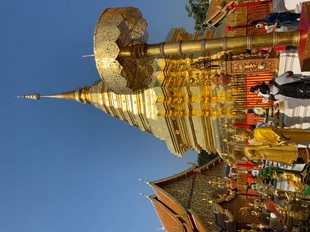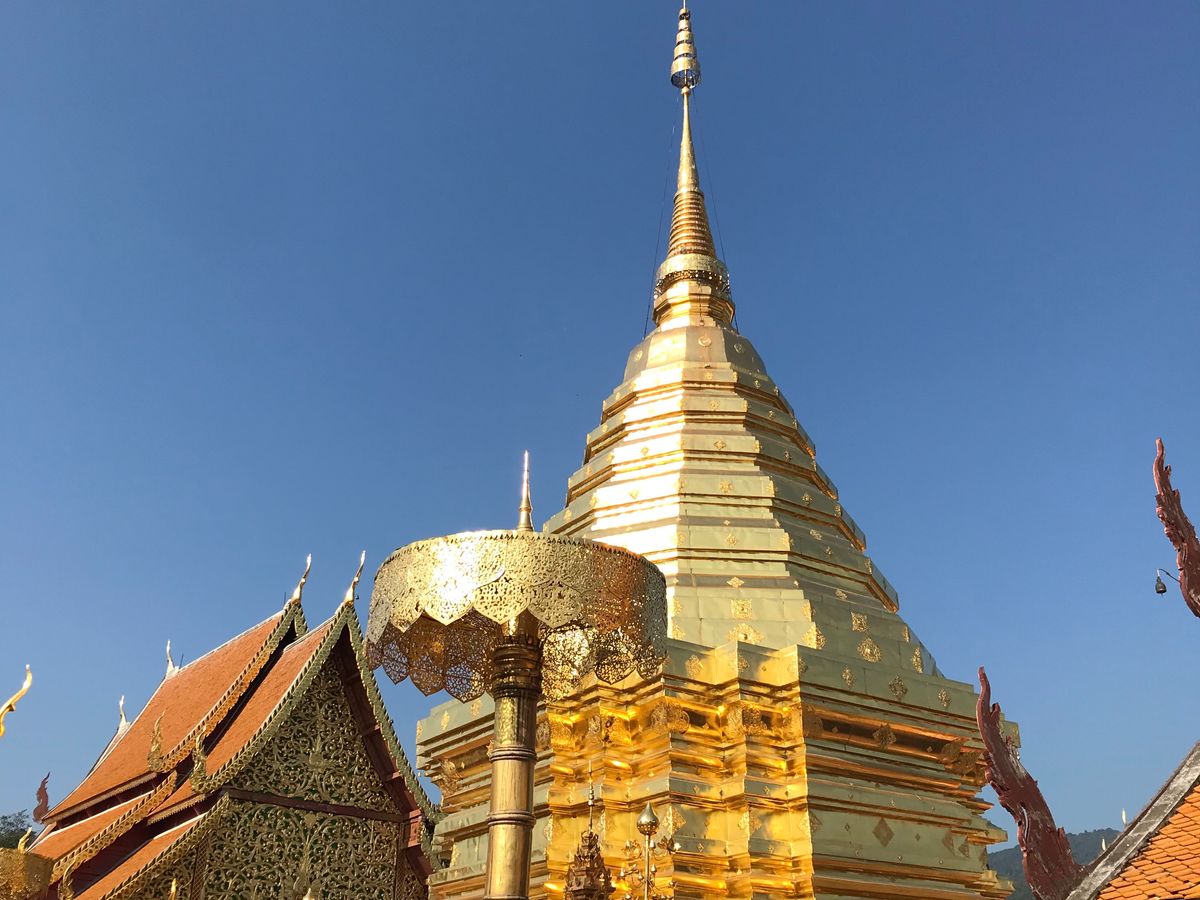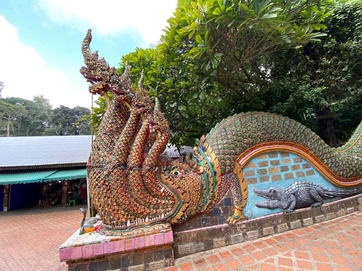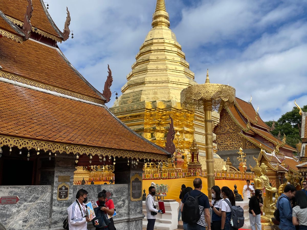 バンコクで主要なお寺を見た後だったので、チェンマイではアクティビティをたくさんしようと考えていました。でも、これははずせない。ドイステープはチェンマイ市内のホテルからでも山の中腹に黄金に輝いているのがわかります。大みそかの夜に見たライトアップされたドイステープはとてもきれいでした。ツアーは、コロナの観光客減少から日本語を話すのは久しぶりというガイドさんで、久々に話す日本語で私たちも楽しく観光できました。ツアーでなかったらわからないドイステープの仏像や仏塔のことが、彼女の説明でよくわかりました。他の客がいなかったので、プライベートツアーのようでした。