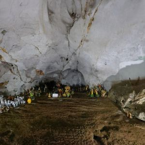 ガイドさんは必要最低限しか 言わない人だったので 自分はまあ それでも大丈夫でした。その日の担当する人に依りますが。ムアンオン洞窟は比較的近い場所でしたが、上へ登るまでの階段が多いので覚悟しておいた方がいいかもしれません。また 洞窟の階段も急で そして 岩で腰をかがめないと通れない場所もあるので 気をつけないといけません。良い運動になるので この後の足湯のサンカンペーン温泉が気持ち良かったです。