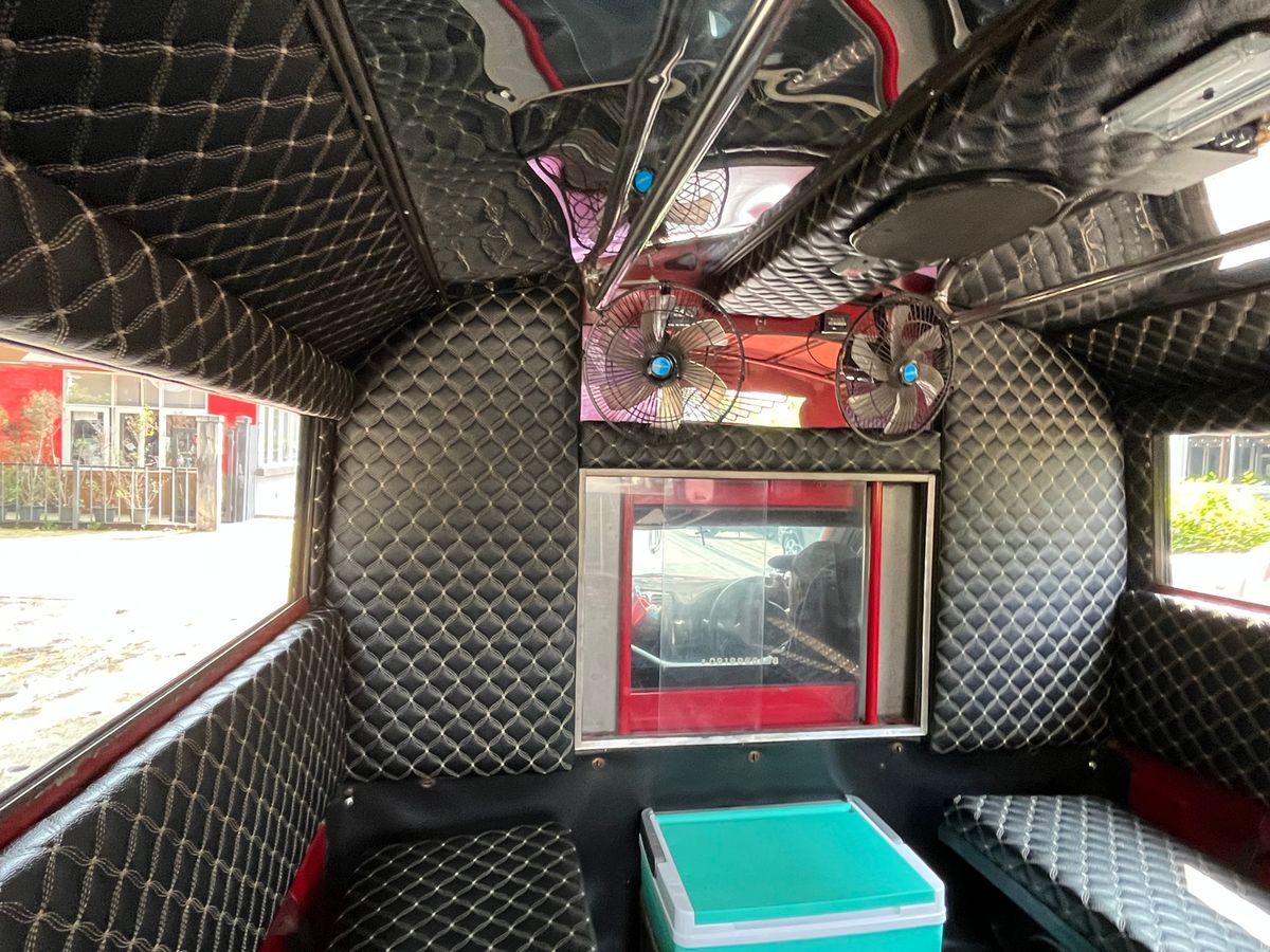 自分では行きにくいチェンマイ郊外の観光地を巡るツアーに参加しました。出発地は旧市街のにある催行会社「DISCOVA」のオフィス。DISCOVA仕様の真っ赤な可愛いソンテウに乗ってきます。外観はローカルっぽいですが、車内はカスタマイズされていて、ローカル気分で快適に移動ができます。