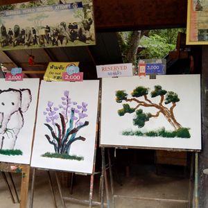 象のショーでまさに目の前で象が描いた絵を購入することができました。