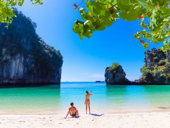 【クラビ発】神秘的な断崖絶壁に囲まれたホン島でシーカヤック絶景探検 & 秘境ビーチ1日ツアー♪<貸切または混載/ランチ&送迎付き/日本語or英語ガイド>