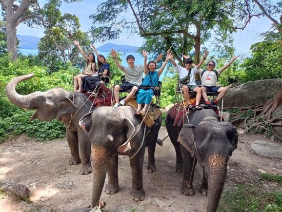 海を見下ろす眺めの良い会場で手軽に象乗り(エレファントトレッキング)体験☆30分・45分・60分から選べます!象に乗らないお散歩プランあり<ホテル送迎付>