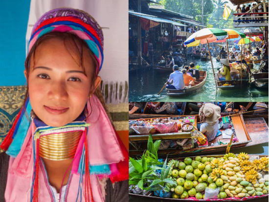 ダムヌンサドゥアック水上マーケット+首長族で有名なカレン族に会える半日観光ツアー<午前/ホテルお迎え/日本語ガイド>