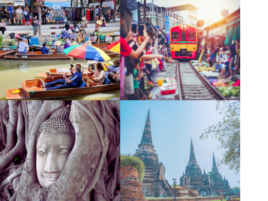 【コスパ最強】アユタヤ3大遺跡+水上マーケット+メークロン鉄道市場観光ツアー 人気スポットを1日で堪能<日本語ガイド/ジョッドフェアーズ ナイトマーケット解散>