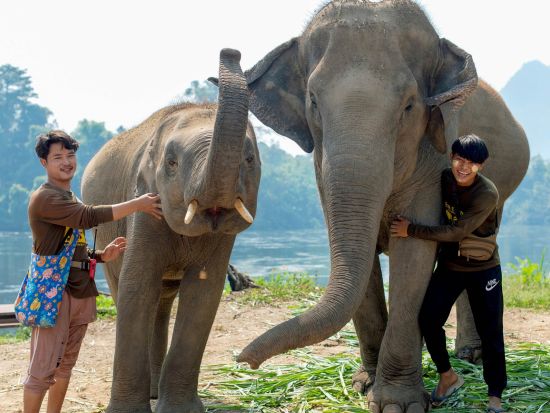 カンチャナブリー日帰りツアー エレファントワールドで象とふれあい&エラワン滝観光 <英語ドライバー/バンコク発着>