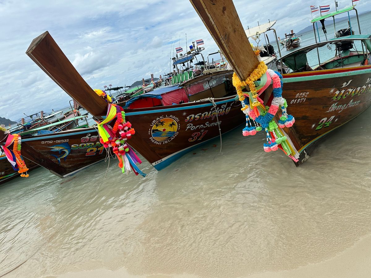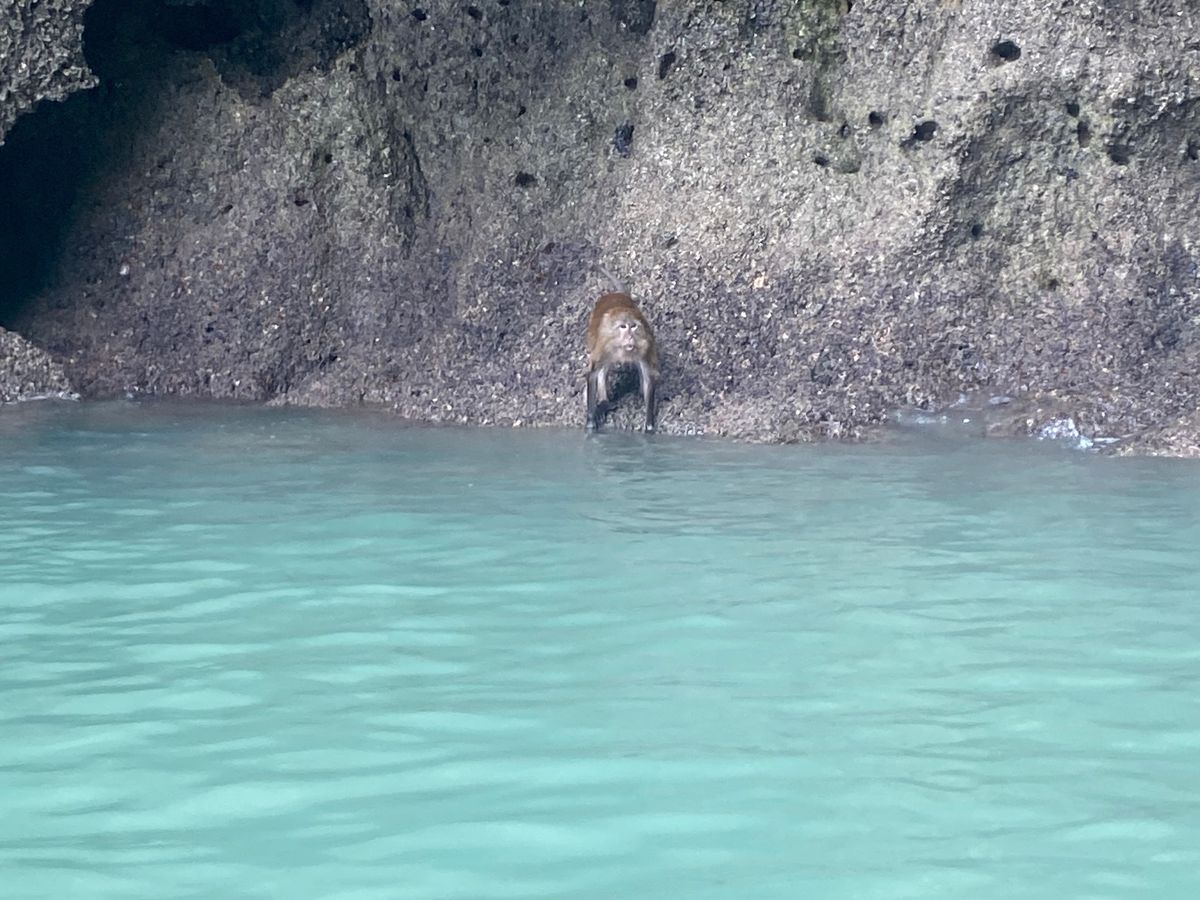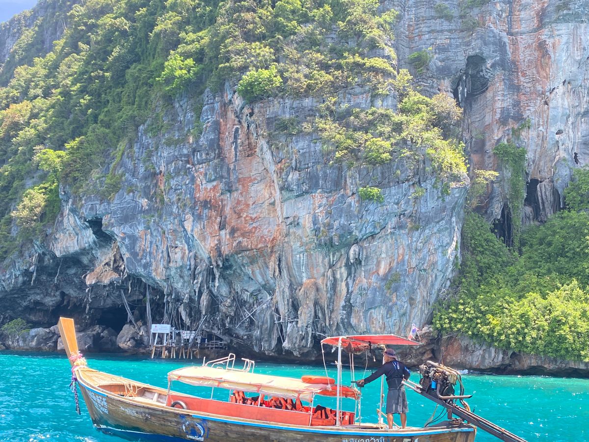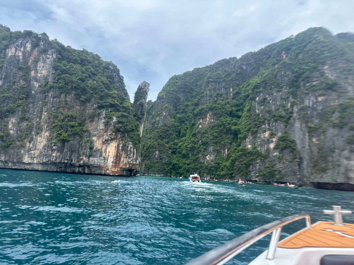 ピピ島は2500バーツを支払い、ロングテールボートを予約しました。当日朝まで高価なため予約に迷いましたが、こちらは本当に予約してよかったと思います。プライベートボートでピピ島の湾内を進み、海へ飛び込んだり綺麗で静かな環境を楽しめました(この時点で雨が上がっていたのも大きかったです)。ガイドの方がつきっきりでこれでもかというくらいの写真を撮ってくださり、ユーモアを交えたポーズの提案もしてくださり、ツアーの中で最も楽しめました。