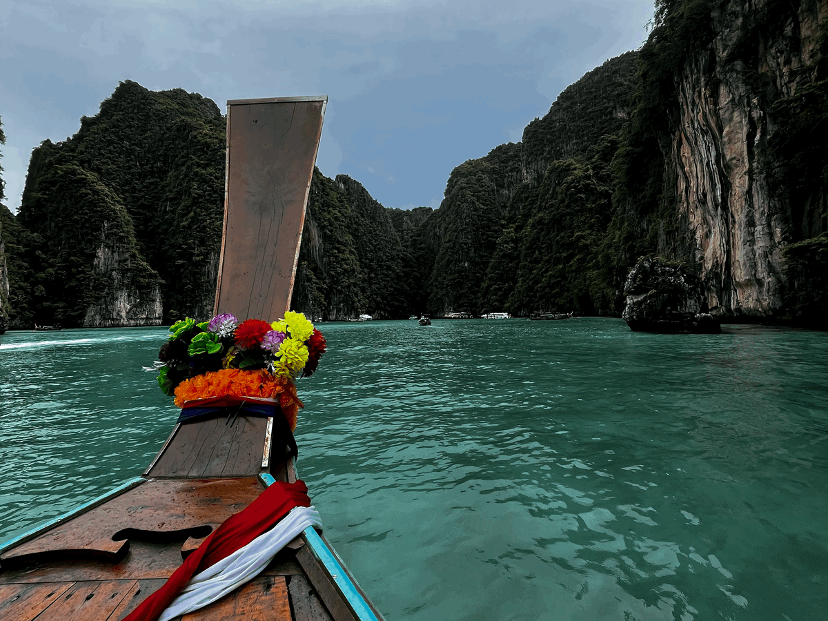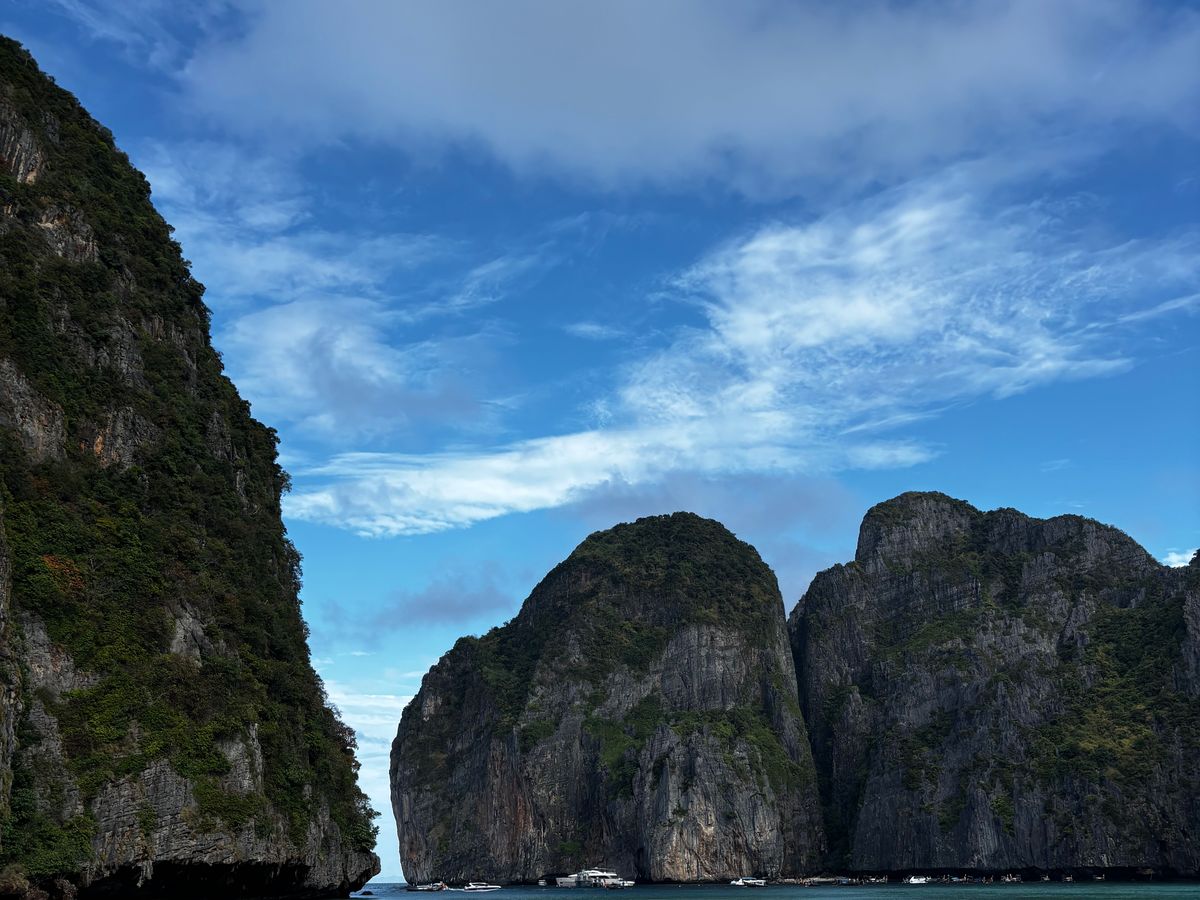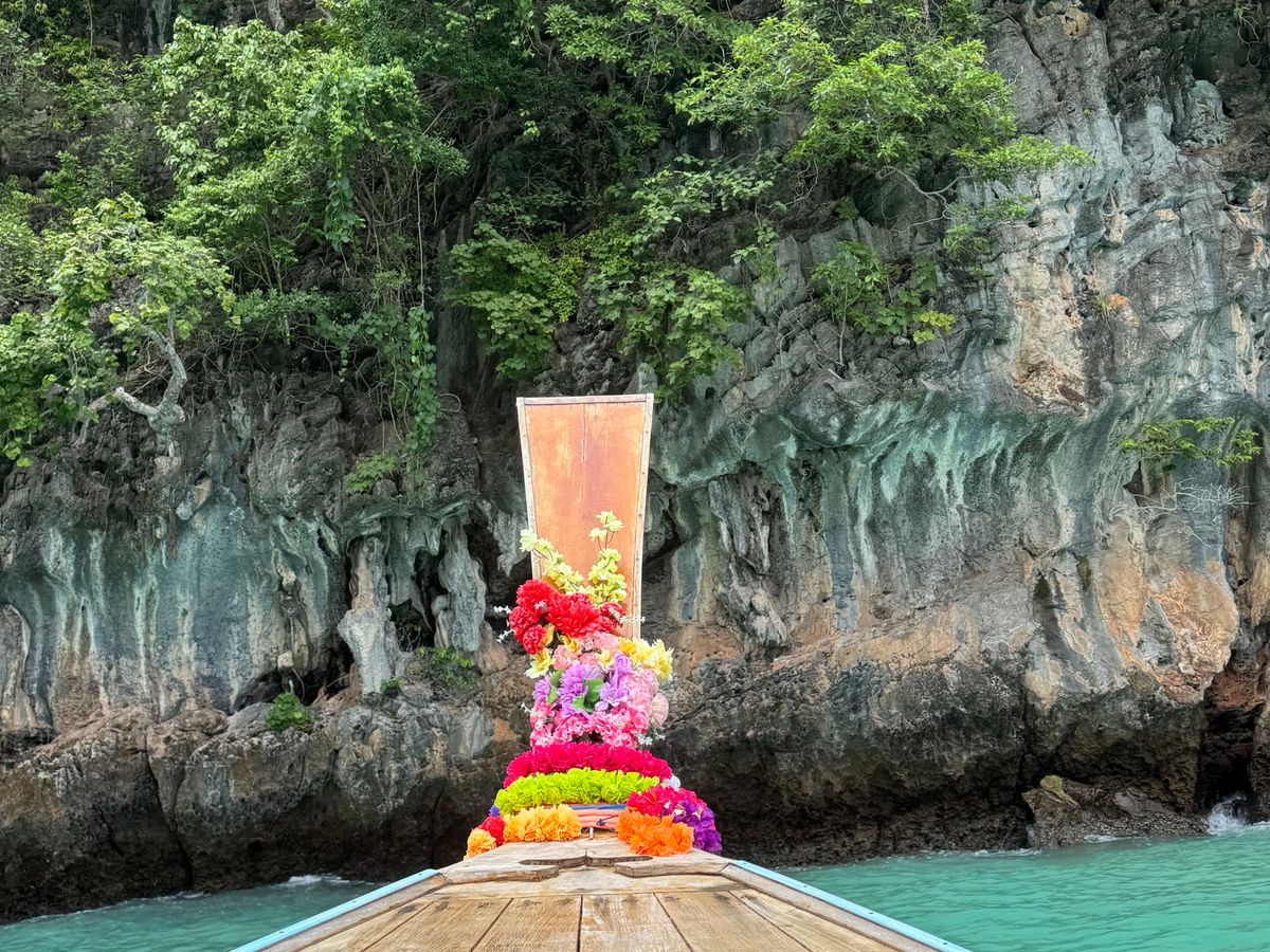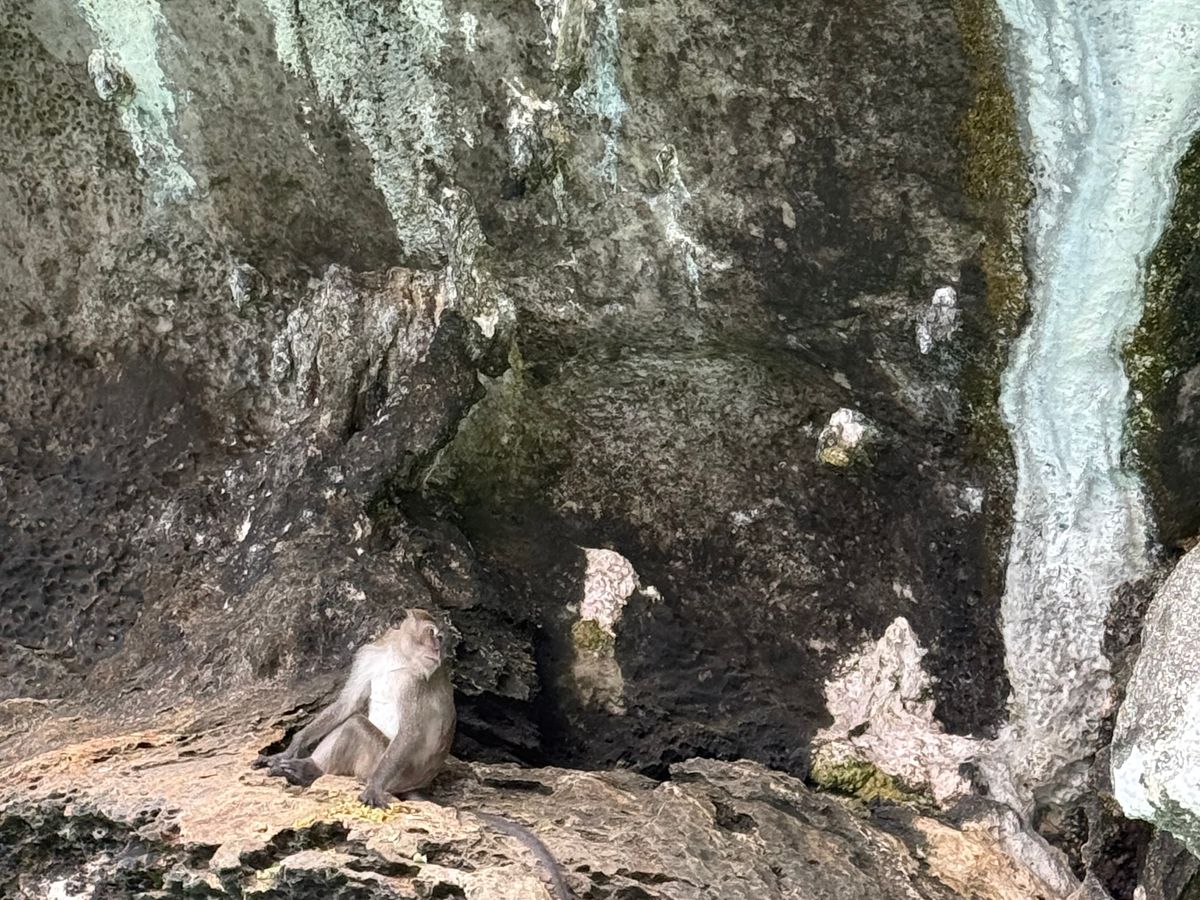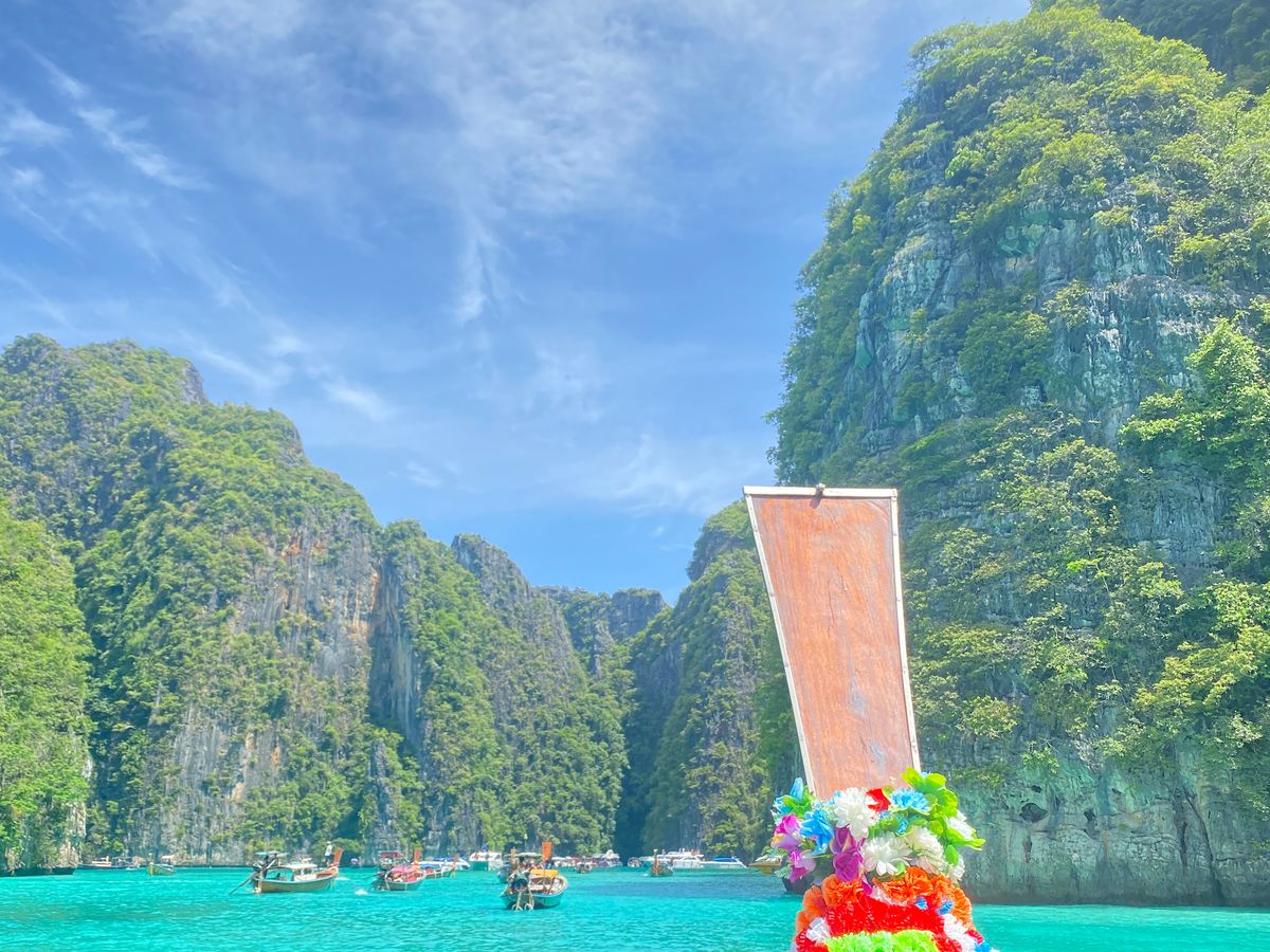 ピピ島は2500バーツを支払い、ロングテールボートを予約しました。当日朝まで高価なため予約に迷いましたが、こちらは本当に予約してよかったと思います。プライベートボートでピピ島の湾内を進み、海へ飛び込んだり綺麗で静かな環境を楽しめました(この時点で雨が上がっていたのも大きかったです)。ガイドの方がつきっきりでこれでもかというくらいの写真を撮ってくださり、ユーモアを交えたポーズの提案もしてくださり、ツアーの中で最も楽しめました。