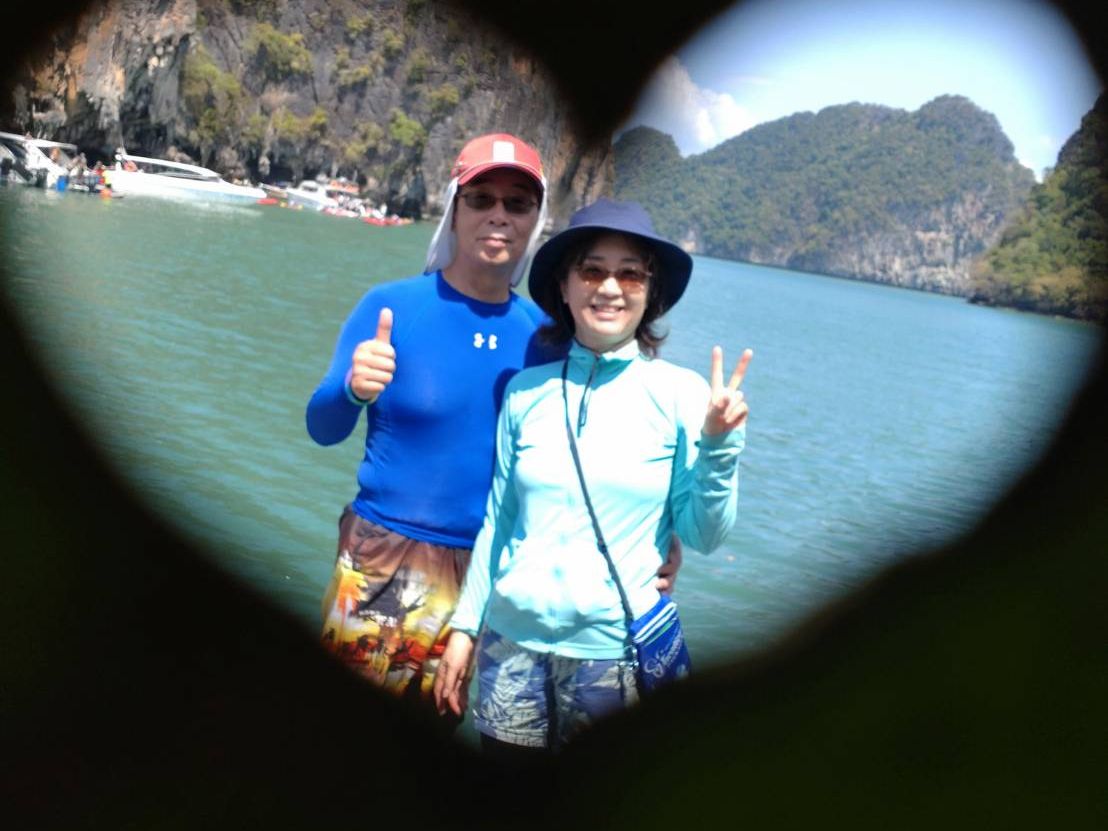 AM8:30分前に上陸桟橋前の待合わせホテルに着き、約1.45分のドライブでパンガー湾に着き、20人?乗りのテールボードに2人だけで、海の桂林を思わせる景色を50分程堪能し、通称007ジェームスボンド島へ、露店もあり人がいっぱい、湾で必ず寄る観光地で泳いている西洋?の方もいました。
