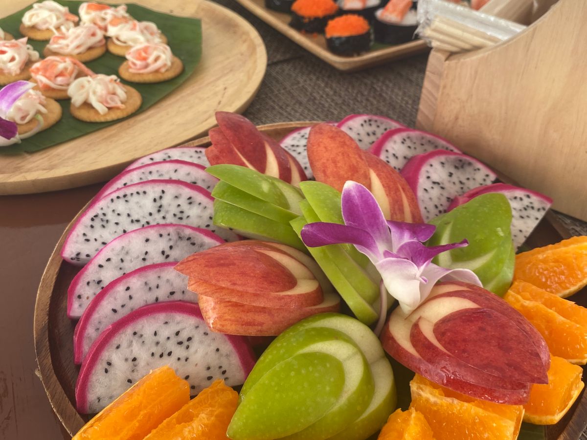 昼食はタイ料理のビュッフェでした。味はそれ相応です、フルーツは美味しかったです。