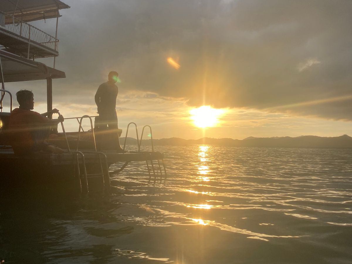 午前中はバンブー島に行きました。朝からの豪雨が継続しており、かなり寒く暖かい海中に漂っているしかない状態で、バンブー島自体はあまり満喫できませんでした。しかし、ガイドの方が盛り上げ、写真も沢山撮ってくれたため、それほど辛くはなかったです。晴天であれば、静かできれいなビーチを楽しめると思います。