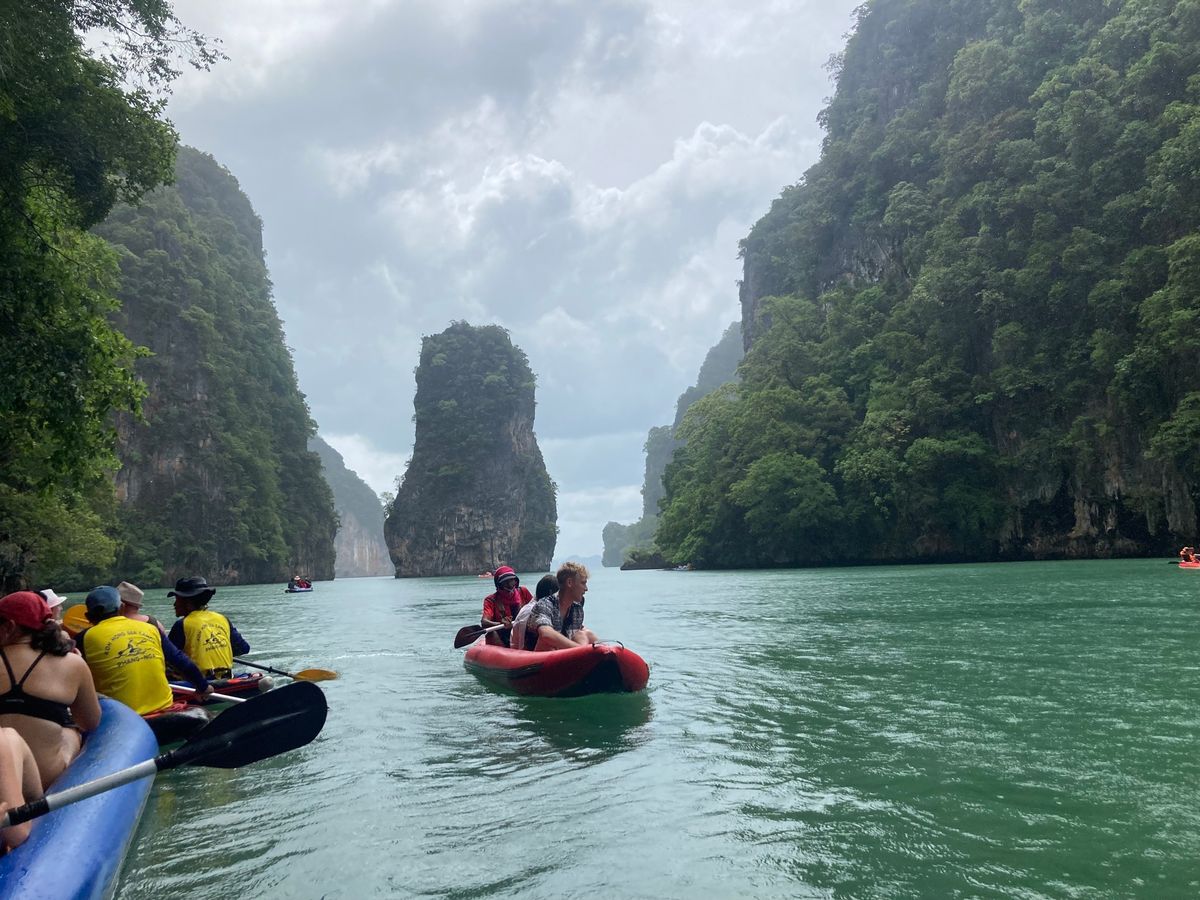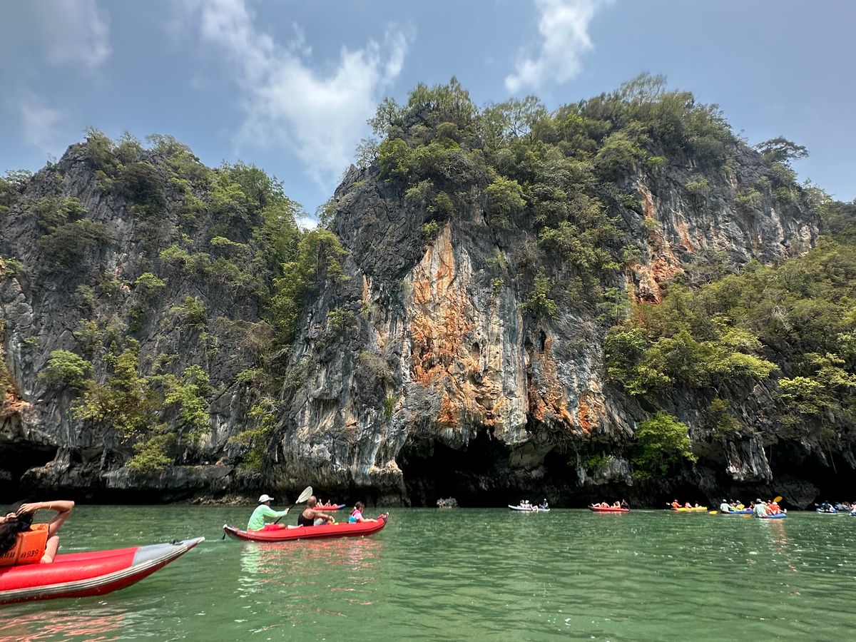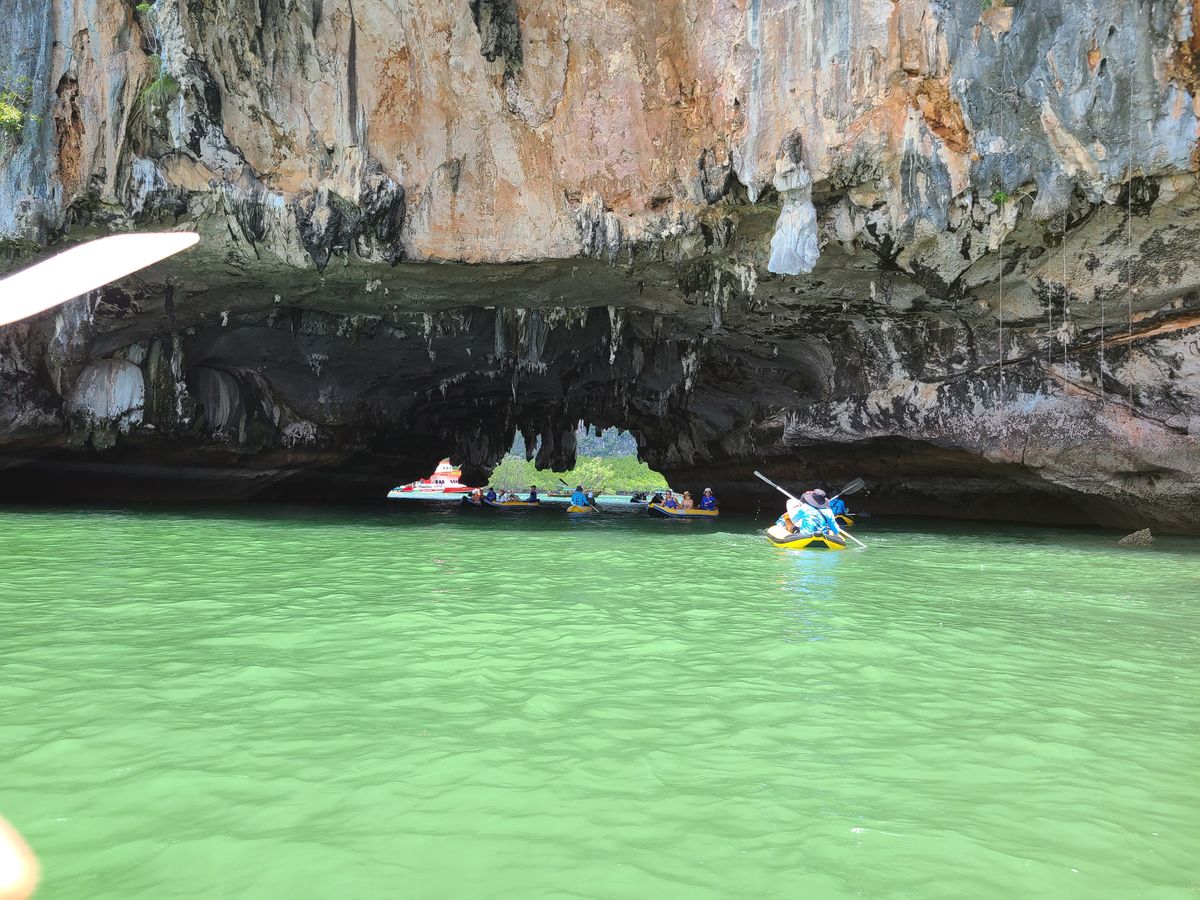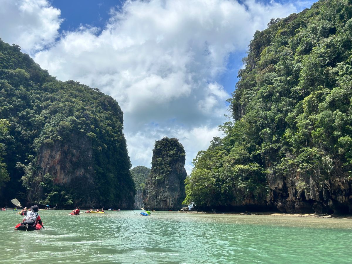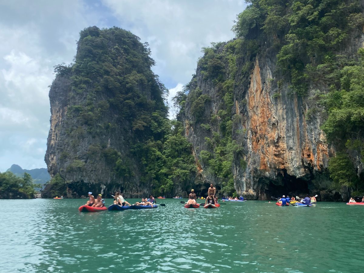 7月中旬にプーケットに行きました。雨季だし、天気予報は雨だし、海に出ても良いことないかもと心配しましたが、結果、行って良かったです。とても楽しかったです。とくにカヌーのアクティビティは初め難色を示していた連れも大満足。面白い経験だと喜んでいました。また私たちの場合、日本人が私たち2人だけだったので、日本語のガイドさんが専属で付いてくれた形になり、フォトスポットも混雑する前に案内してくれてたくさん写真を撮ってくれました。また、船ではお水やコーラが飲み放題で、自分たちで準備する必要がなかったのも良かったです。