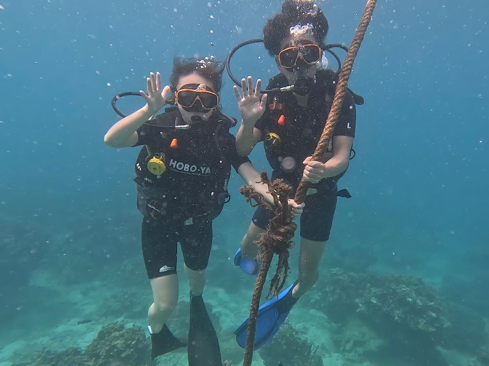 今回さ3人でダイビングに参加させていただきました。1.2本目は初体験の友達2人と潜り、3本目は別の日本人グループの方とオープンウォーター同士で潜りました。