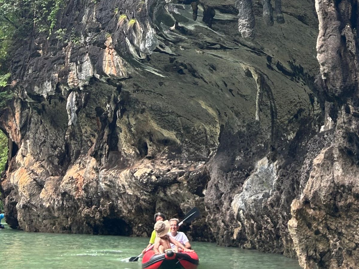 スピードボートのツアーと悩みましたが、こちらのツアーにして大正解。往復のボートでは、スナックやフルーツ、ドリンクもサービスされて、ゆったり楽しめます。スタッフの方もみんな優しくて最高です。パンガー湾は想像以上に美しく、カヌー探検も楽しく、楽しい一日でした。
