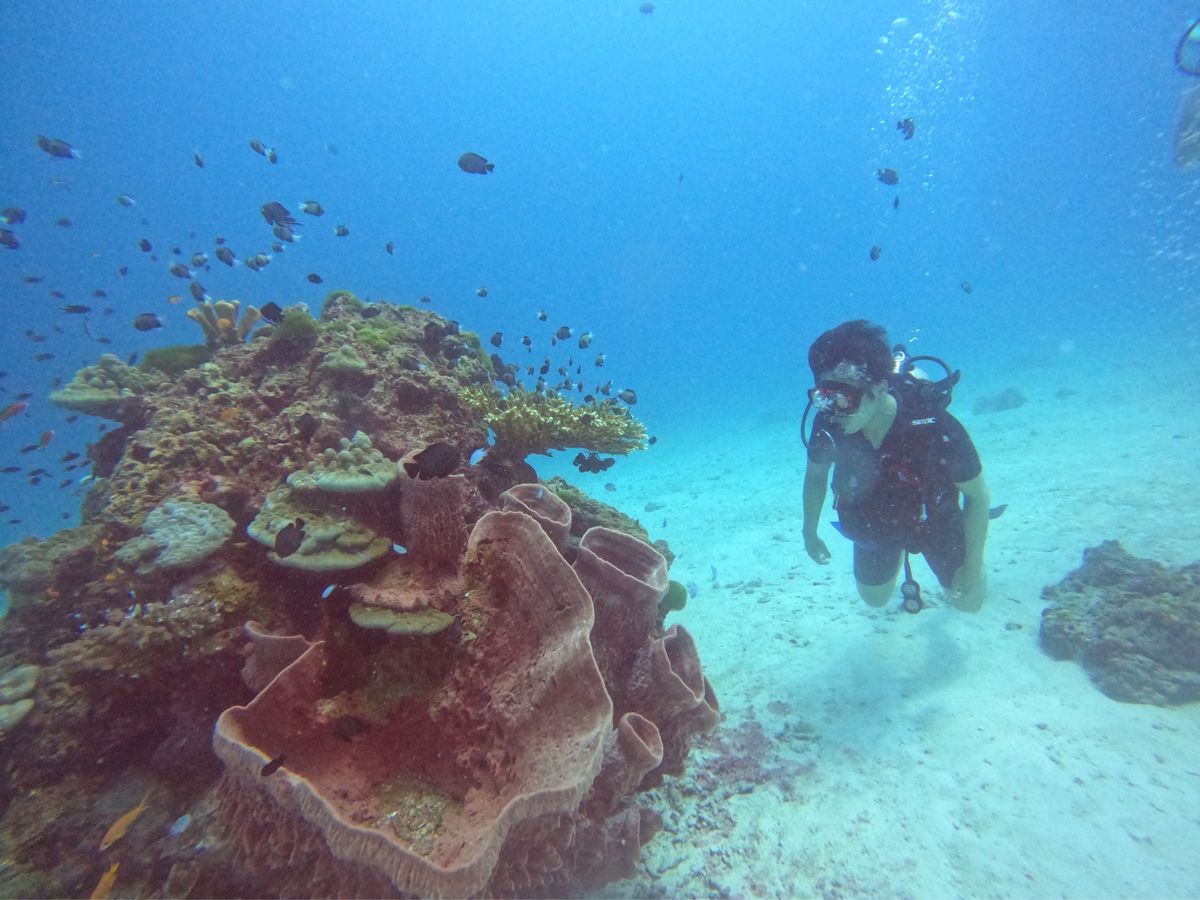 初のインド洋は日本では見られない魚も多く、ワクワクが止まりませんでした!潜った後、魚の説明もしていただき、楽しかったです!3ダイブ目に行った、沈没船や沈没バイクとの記念写真も最高でした!
