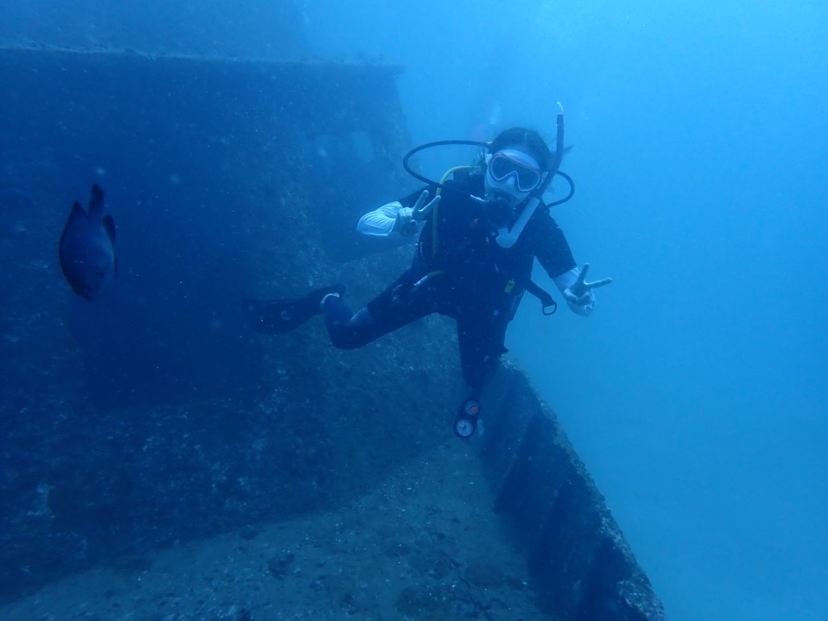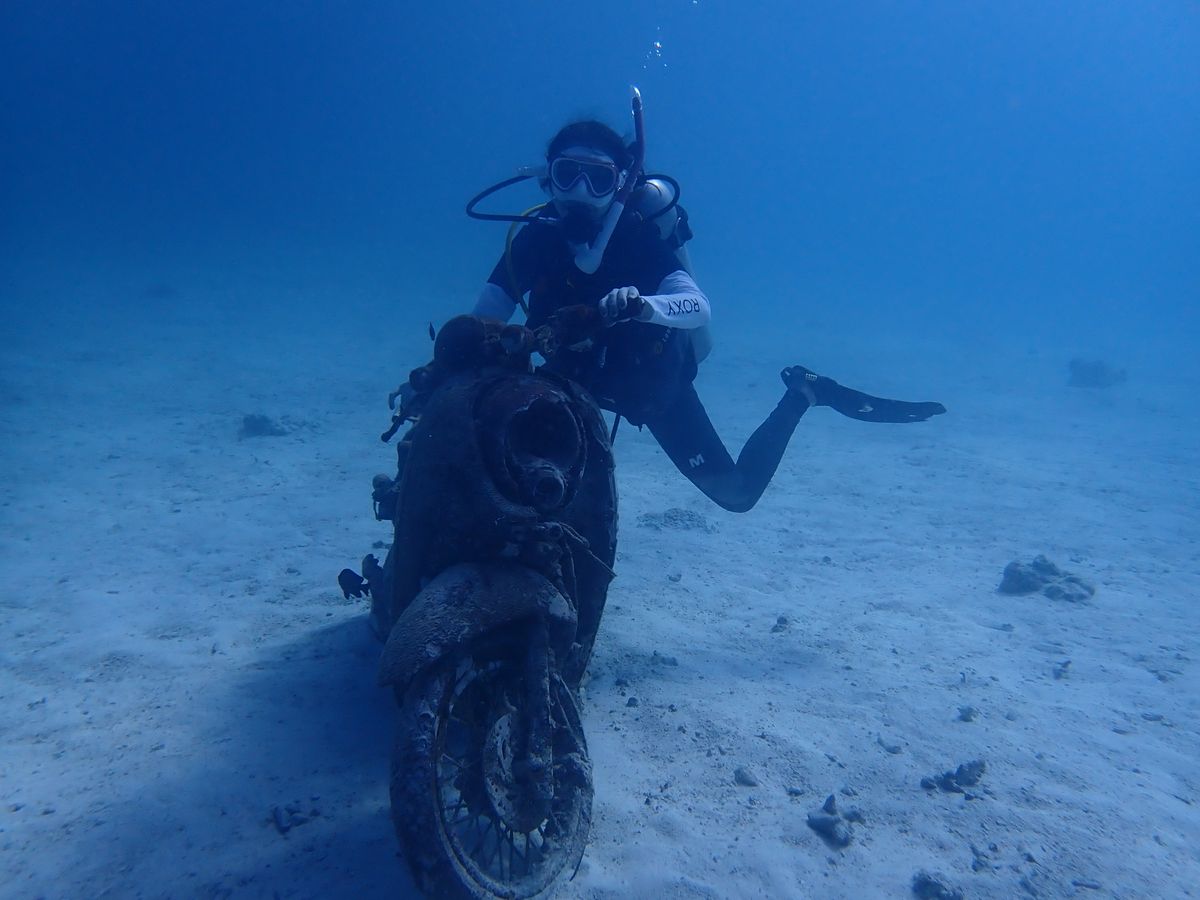 ダイビングは魚もたくさん見れましたし、海底に沈んだ船の中に入れたり、バイクに跨っているところを写真に撮って頂けたりと本当に良い思い出になりました。