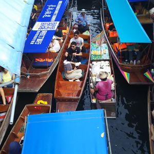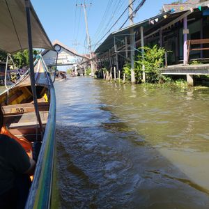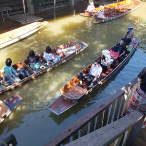 水上マーケットは、エンジン付きの船がコースについてますが、手漕ぎ船とは趣きがまったく別種類のものでしたので、200バーツ払って手漕ぎボートに乗ることをオススメします。風も気持ちいいし、途中でボートを停めもらいながらする買い物も楽しかったです。とても雰囲気良かったです。