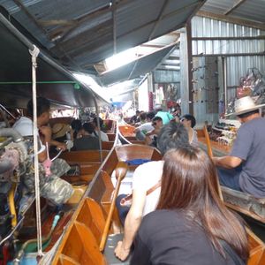 線路市場は初体験で、期待どおり間近で電車を通るのが見れたのには感動しました。ガイドさんが事前にベストポジションを教えてくれたのも◎。水上マーケットは2度目の体験で、スピードボートの迫力は遊園地のアトラクション並に面白いです。でも、水上マーケットの買物ボートは相変わらず別料金を取られるのは理由が分かりません。ツアー代金に込めないならその説明を事前にするべきです。土産物を相場の10倍の価格でふっかけて来たのには、呆れるばかりです。ツアー会社は立場上アドバイス出来ないでしょうから、個人的には水上マーケットで買物は避けましょう。ココナッツファームも昔とは変わってしまい、規模も縮小して、高いお土産を買わされる場所になっていて残念でした。
