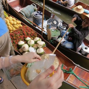 。水上マーケットは大賑わいでボートのラッシュだった。25年前に一度行ったけど昔とは大違いでした。又地元の人が売ってい果物は美味しかったし、おの臭いドリアンがあの異臭が無く美味しかった、テレビで取り立てのドリアンはあの不愉快な異臭がしないと言ってましたが本当でした。 バンコクでもほとんど取り立てドリアンは有りません。 ぜひ水上マーケットで取り立てのドリアンを見つけたらぜひ試食を金額が150バーツでした。