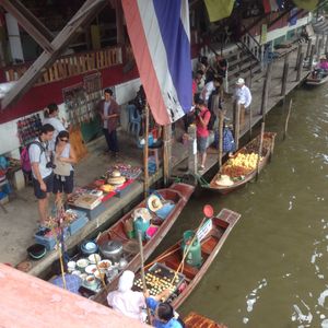 バンコク滞在中一番たのしかったと思います。線路市場はお肉がそのままおかれていたり、魚が目の前でさばかれていたりとにかくワイルド。列車が来る時間になるとちゃんと片付いて列車が通過するとまた市場に戻ります。とにかくすごかった!水上マーケットは自分で値段交渉します。手漕ぎボートは200Bの追加料金がかかりますがこれは参加するべし!!水上マーケットを肌で味わうことができました。ガイドさんもとっても親切で楽しく参加することができました。また利用したいです。