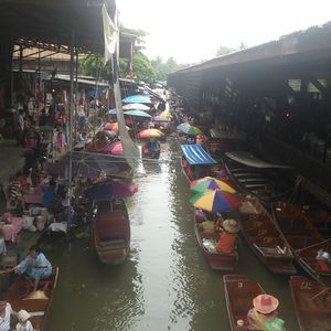 マーケットに着いたら必ず手漕ぎ舟に乗った方がいいですよ。200バーツで30分ぐらいゆっくり市場を回ってくれます。欲しい物があれば止まってくれます。商品は言い値の半額以下にはなります。3割ぐらいにもなる物があるので頑張って交渉してみて下さい。