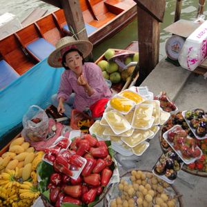 水上マーケットはちょっと値段がはりますがフルーツたべてドリンク飲んでタイの雰囲気を味わうにはいいとおもいます。チャオプラヤ川などタイは川がメインですので。