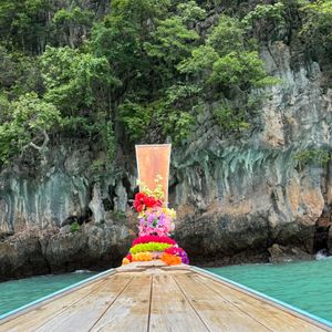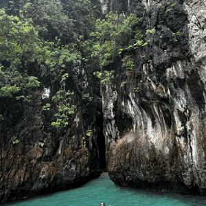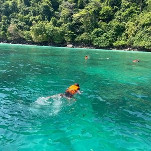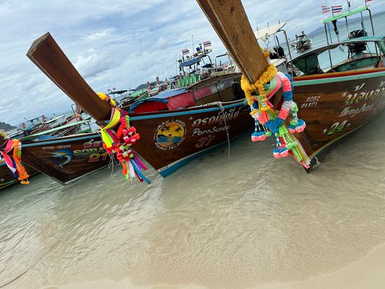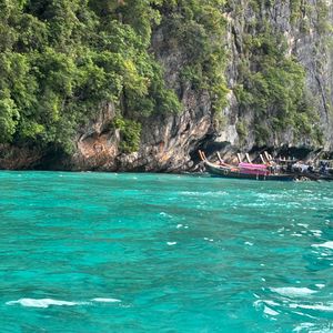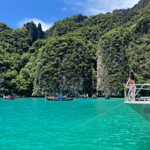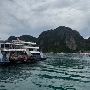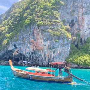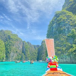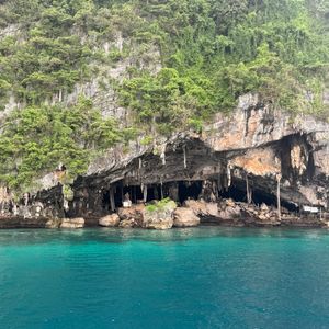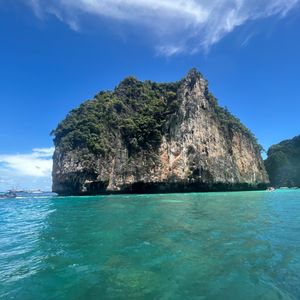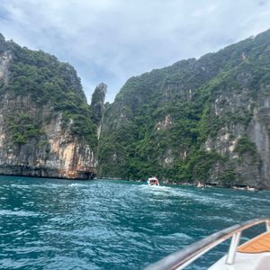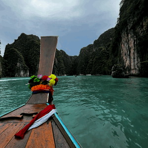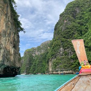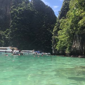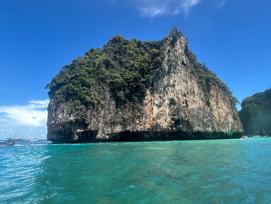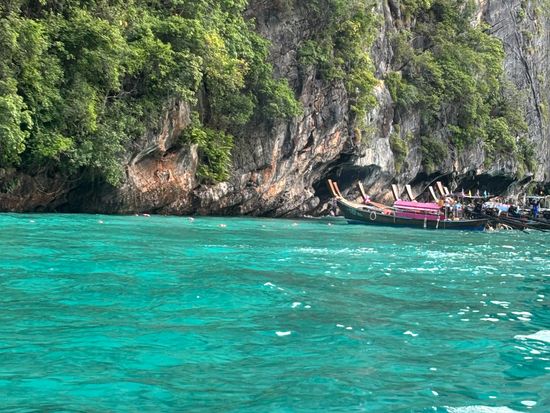 ピピ島は2500バーツを支払い、ロングテールボートを予約しました。当日朝まで高価なため予約に迷いましたが、こちらは本当に予約してよかったと思います。プライベートボートでピピ島の湾内を進み、海へ飛び込んだり綺麗で静かな環境を楽しめました(この時点で雨が上がっていたのも大きかったです)。ガイドの方がつきっきりでこれでもかというくらいの写真を撮ってくださり、ユーモアを交えたポーズの提案もしてくださり、ツアーの中で最も楽しめました。