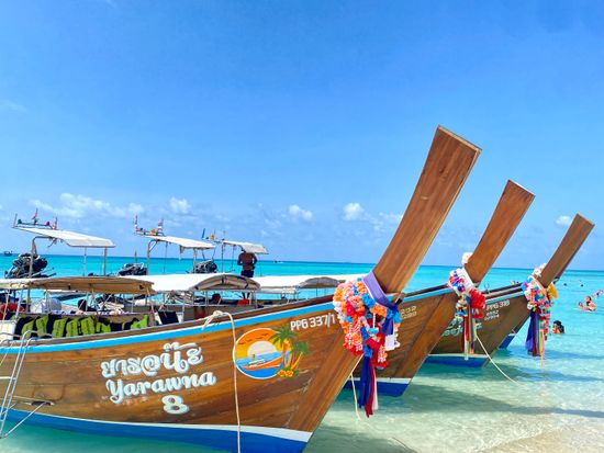 ピピ島とは、タイ・プーケットの南東に浮かぶ6つの島の総称。美しい自然とサンゴ礁に囲まれたエメラルドグリーンの海は、シュノーケリングやダイビングに最適の場所です。最も大きいピピ・ドン島周辺には、見逃せないポイントがたくさん。ディカプリオ主演の映画「ザ・ビーチ」の舞台として有名なピピ・レイ島のマヤベイは、船上から見られる秘境のような白砂のビーチが人気。手つかずの自然が残る無人のバンブー島に上陸できるツアーもあります。島の周遊(アイランドホッピング)には、効率よく回れるオプショナルツアーへの参加がおすすめの行き方。移動時間は、貸切チャーターもできる小型スピードボートで1時間、大型フェリーでゆったり2時間の船旅です。 ツアーの雰囲気は参加者の口コミをチェック!日本語ガイド付きプランや朝日鑑賞もできる早朝発の半日プランで午後はまったり...など、現地予約も可能な日帰りツアーをご用意しています。 ベストシーズンの10月~4月(乾季)は、透き通るような海を楽しむことができます。雨季(5月~9月)は波が高くなることが多いので、船酔いしやすい方は揺れの少ない大型船のツアーがおすすめです。