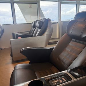 ゴールドシートは快適で、コーヒーやバナナ、帰りにカットフルーツも無料でふるまわれて、よかったです。行った日は残念ながら風が強く、船がかなり揺れましたが、船後部のオープンスペースにずっと座れて、薬飲まずにも何とか耐えられました。