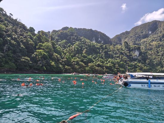 船から見るアンダマン海は本当にエメラルドグリーンで、映画『ザ・ビーチ』のロケ地にもなったマヤベイの景色は写真映え抜群でした。