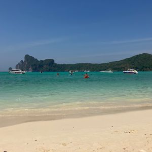 マヤビーチが本当に綺麗で、足首までしか入れませんが一見の価値ありだと思います。シュノーケリングは初めてでしたが、ライフジャケットを着て安心して楽しむことができました。海が綺麗で魚や珊瑚もたくさん見ることができました。カイ島では海で遊べますが、岩や砂浜がゴツゴツして痛いのでマリンシューズ持参がおすすめです。