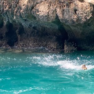 ボートに再乗船して、湾に移動、ボートから海に飛び込んだり、海で遊びます。SUPなどをしている人もいました。