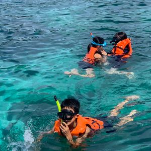 5歳の子供連れで参加しました。あまり外出が好きではない子供は案の定不機嫌な時もありましたが、綺麗なマヤベイの砂浜を歩いたり貝殻拾いを楽しそうにしていました。ツアーに参加していた他の子供に感化されたのか、初めて海に入れたのも良い思い出になりました。次回参加するときは水陸両用の靴と子供用のシュノーケリングマスクを準備して臨みたいと思います。帰りはシャワーを浴びれると伺ってましたが、感染対策の為なのか無く、ツアーが終わり船から降りると貰えるウェットティッシュで軽く足など拭いて、トイレで着替えました。