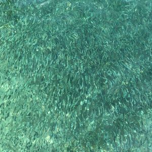 その次のシュノーケリングスポットではたくさん魚を見れました!小さい魚の群れが私達と一緒に泳いでて面白かったです。