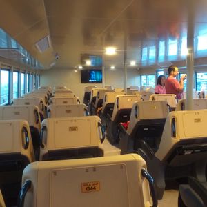 現地での船への乗船は、400人を超える規模でしたが、プランがゴールドシートだったので、マッサージチェア付きのシートにフリードリンク、船上への出入りなど、1番上のランクだったのでゆったりと快適な船の旅でした。ピピ島に着くまでにプランの選択でシュノーケリングを選びました。日程の詳細では、モンキー島の観光とありますが、海の上でのシュノーケリングはロープで囲まれた所だけといわれ、モンキー島には全く行けませんでした。シュノーケリングの方を選ぶと、ロングテールボートに乗る事ができませんでした。その他に関しては、全く快適でいい観光が出来ました。