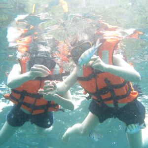 島巡りでのシュノーケルでは、我が家は子供3人いて深い場所で心配でしたが現地スタッフの方々もいい人ばかりで、とてもよくしていただき4歳の娘も息子達も一緒に泳いで遊んでもらいとても喜んでいてスタッフの方々には、とても感謝しています。