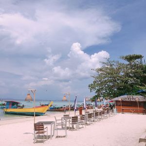 お昼はピピ島のホテルのフロント?半テラス席のようなところでバイキング形式でした。タイ料理が振る舞われました。飲み物はバイキング会場には水、コーヒー、ティーのみです。スピードボート内では水、コーラ、オレンジ、などいろんな飲み物を定期的に配ってくれます。