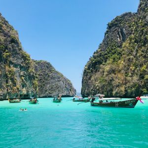 ピピ島とは、タイ・プーケットの南東に浮かぶ6つの島の総称。美しい自然とサンゴ礁に囲まれたエメラルドグリーンの海は、シュノーケリングやダイビングに最適の場所です。最も大きいピピ・ドン島周辺には、見逃せないポイントがたくさん。ディカプリオ主演の映画「ザ・ビーチ」の舞台として有名なピピ・レイ島のマヤベイは、船上から見られる秘境のような白砂のビーチが人気。手つかずの自然が残る無人のバンブー島に上陸できるツアーもあります。島の周遊(アイランドホッピング)には、効率よく回れるオプショナルツアーへの参加がおすすめの行き方。移動時間は、貸切チャーターもできる小型スピードボートで1時間、大型フェリーでゆったり2時間の船旅です。 ツアーの雰囲気は参加者の口コミをチェック!日本語ガイド付きプランや朝日鑑賞もできる早朝発の半日プランで午後はまったり...など、現地予約も可能な日帰りツアーをご用意しています。 ベストシーズンの10月~4月(乾季)は、透き通るような海を楽しむことができます。雨季(5月~9月)は波が高くなることが多いので、船酔いしやすい方は揺れの少ない大型船のツアーがおすすめです。
