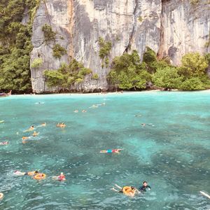 今回、雨季のプーケット(2918/8/28)ということで、あまり期待しないで参加しましたが運よく雨もふらず、シュノーケル時には晴れ間ものぞいて楽しむことができました。乗船時にやたらと席のアップグレードを勧められ、「エコノミーは船底だが、アップグレードはパノラマビューだ」などと脅されますが、実際にはデッキにも自由に出れるのでエコノミーでも十分でした。また他の方が書いている通り、移動時間に対してピピ島滞在時間は短めなのでしょうが、そこまであわただしさは感じませんでした。マヤベイに執着なければ悪くないツアーだと思います。
