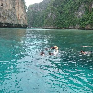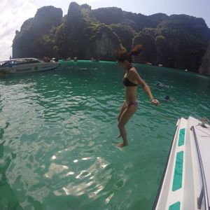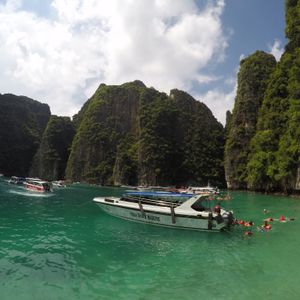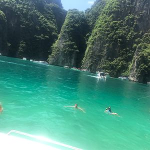 早朝出発でサンライズを期待していたが、あいにく乗船のタイミングで雨が降り出し、マヤベイも雨。スピードボートも1時間弱くらいで、最初からベタベタに濡れた状態でした。シュノーケル、昼食場所のビーチ、昼食後にもうひとつ島に行きましたが、天気は完全に回復し、素晴らしい景色の中、1日過ごせました。ガイドさんやその他のスタッフの方々も皆親切。英語はほとんどわからないけど、日本人の人が半分くらい参加していたので、難なくツアー終了でした。