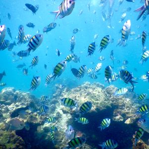 いくつかの島を巡り、シュノーケリングでは、海が綺麗なためたくさんの魚を目の前で見ることができました!