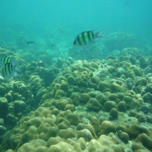 その後場所を変えて船上からシュノーケリング。海はきれいでしたが、雨季なので透明度は低かったです。